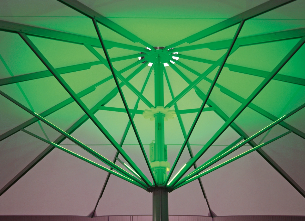 Unsere Großschirme gibt es in vielen verschiedenen Größen und Formen und mit verschiedenem Zubehör, wie Heizung und LED.